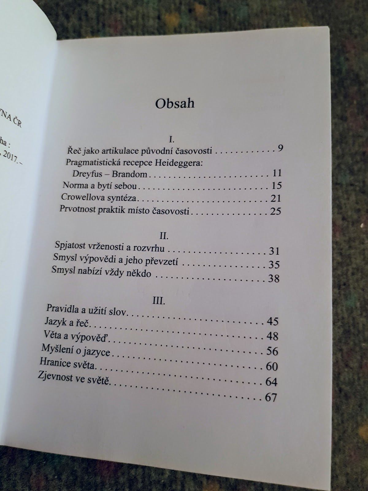Nepochopený Heidegger proti Všem – Óch a Áach, taková malá lyricko-epická bitva o smysluplnou Řeč. Seznam literatury na konci chápu jako Who-is-who, vymezení stran bitevního pole, jako zdvořilé upozornění že SuZ/(H) strčí to vše, co přišlo po něm, do kapsy. Kdyby lingvisti a logici K/H četli, museli by ho nenávidět, ale oni ho číst nebudou, takže je v bezpečí…